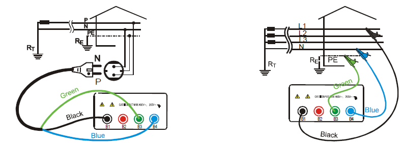 - Συνδέστε τα καλώδια δοκιμής στο όργανο όπως φαίνεται στις παρακάτω εικόνες .